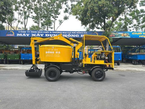 Máy trộn bê tông tự cấp liệu Hồng Hà là một trong những thiết bị thi công hiện đại nhất hiện nay, được thiết kế để giải quyết triệt để các vấn đề trong khâu chuẩn bị và cung cấp bê tông cho công trình. Với khả năng “3 trong 1”: tự xúc nguyên vật liệu – đảo trộn – di chuyển đến mọi vị trí thi công, sản phẩm mang lại sự chủ động tuyệt đối cho nhà thầu và đội thi công.
