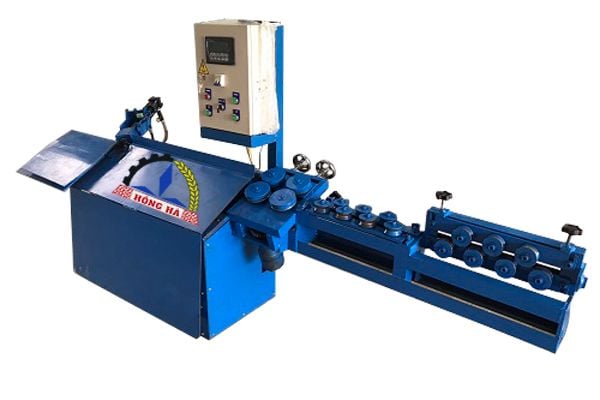 Hệ thống nắn thẳng 14 quả + 4 lô kéo, Hệ thống cắt bẻ Ben cắt, ben bẻ thủy lực tự động .Kích cỡ sắt cắt bẻ sắt tròn Ф6 đến Ф8 . Năng suất 8 - 12 sản phẩm/ 1 phút.